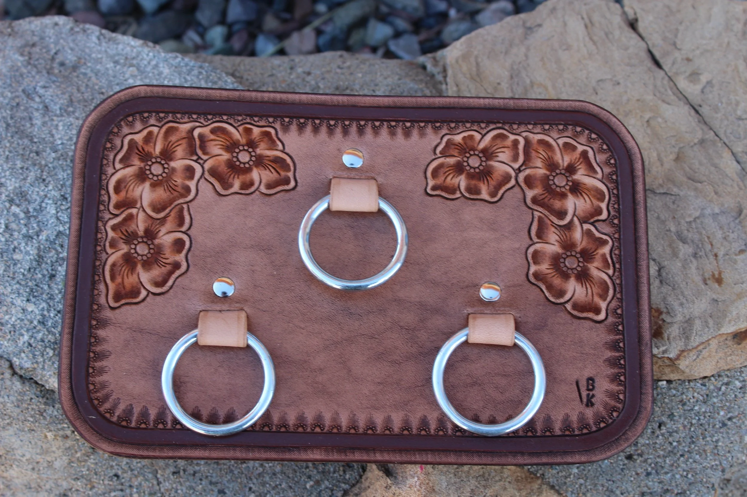 Ready to Ship › Scarf Organizer Image 1 of 2 Image 2 of 2 Scarf Organizer $95.00 This wild rag/scarf display is 8.5 inches wide x 5.5 inches tall. All sales final, no returns. Add To Cart Added! This wild rag/scarf display is 8.5 inches wide x 5.5 inches tall. All sales final, no returns.