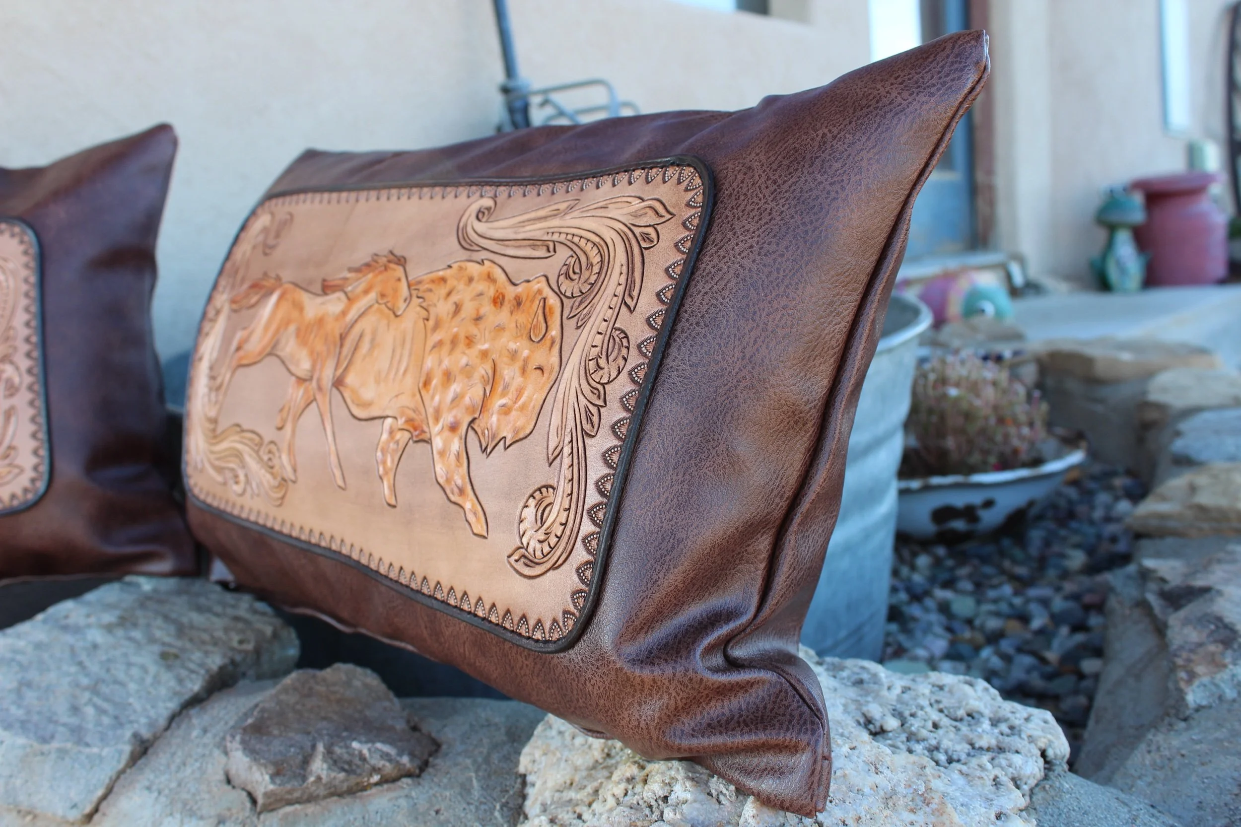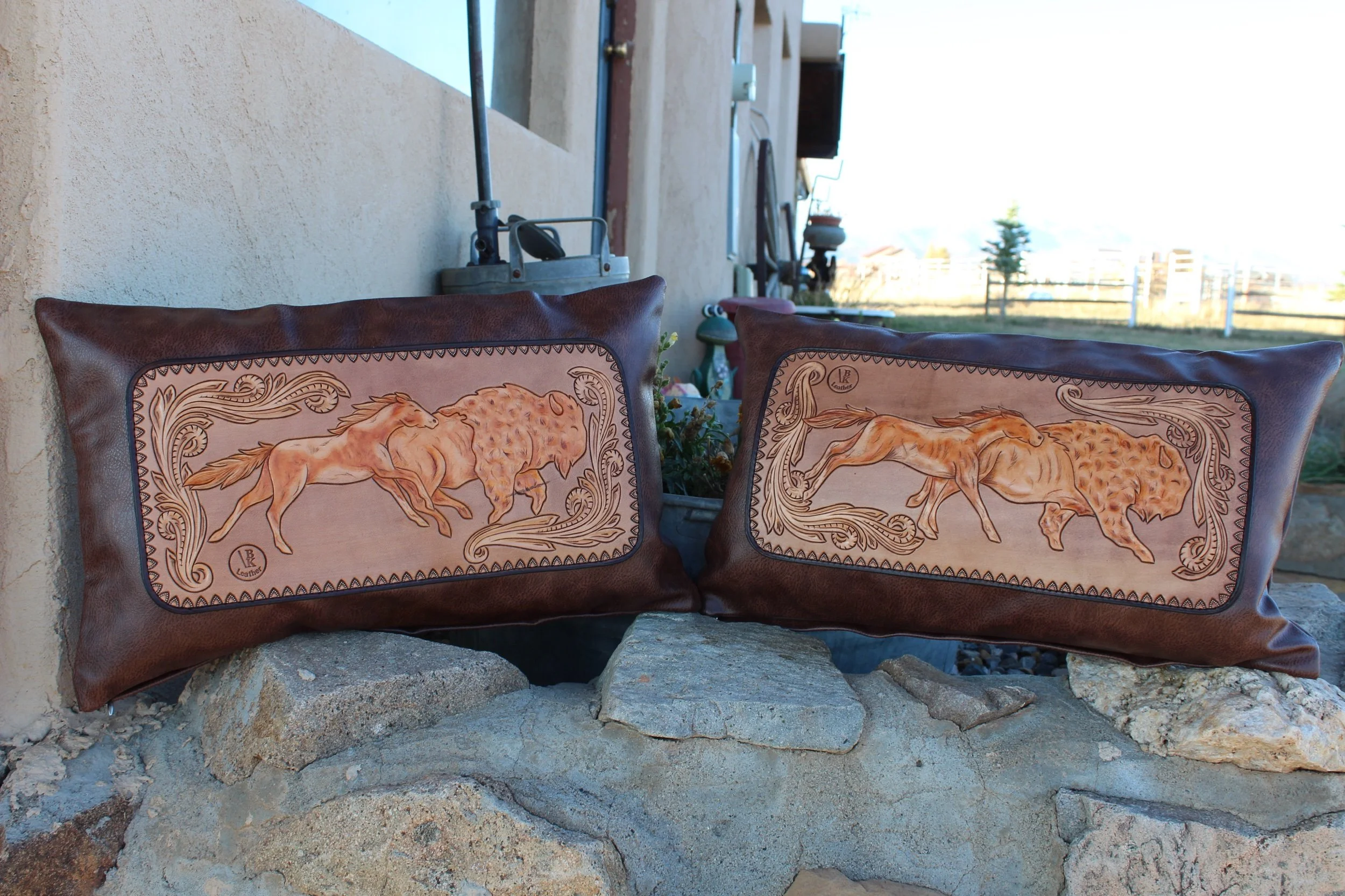 Ready to Ship › Pillows with Tooled Patch Image 1 of 5 Image 2 of 5 Image 3 of 5 Image 4 of 5 Image 5 of 5 Pillows with Tooled Patch $300.00 sold out Set of two pillows with tooled patches along the front. These pillows are 12 in x 20 in.All sales final. No returns. Sold Out Added! Set of two pillows with tooled patches along the front. These pillows are 12 in x 20 in.All sales final. No returns.