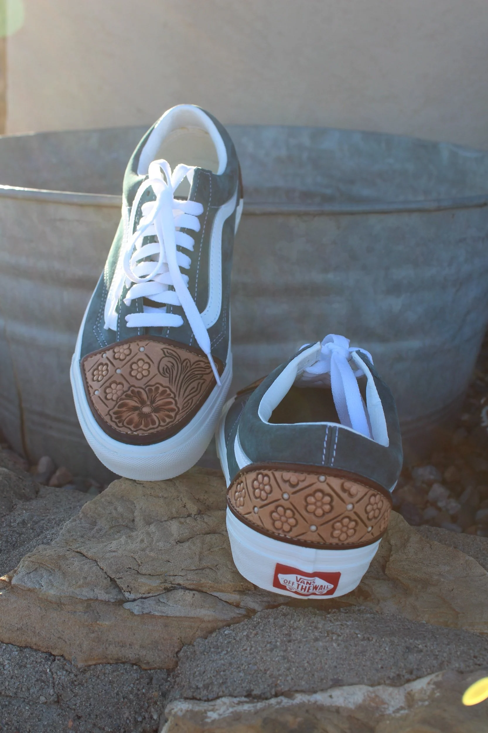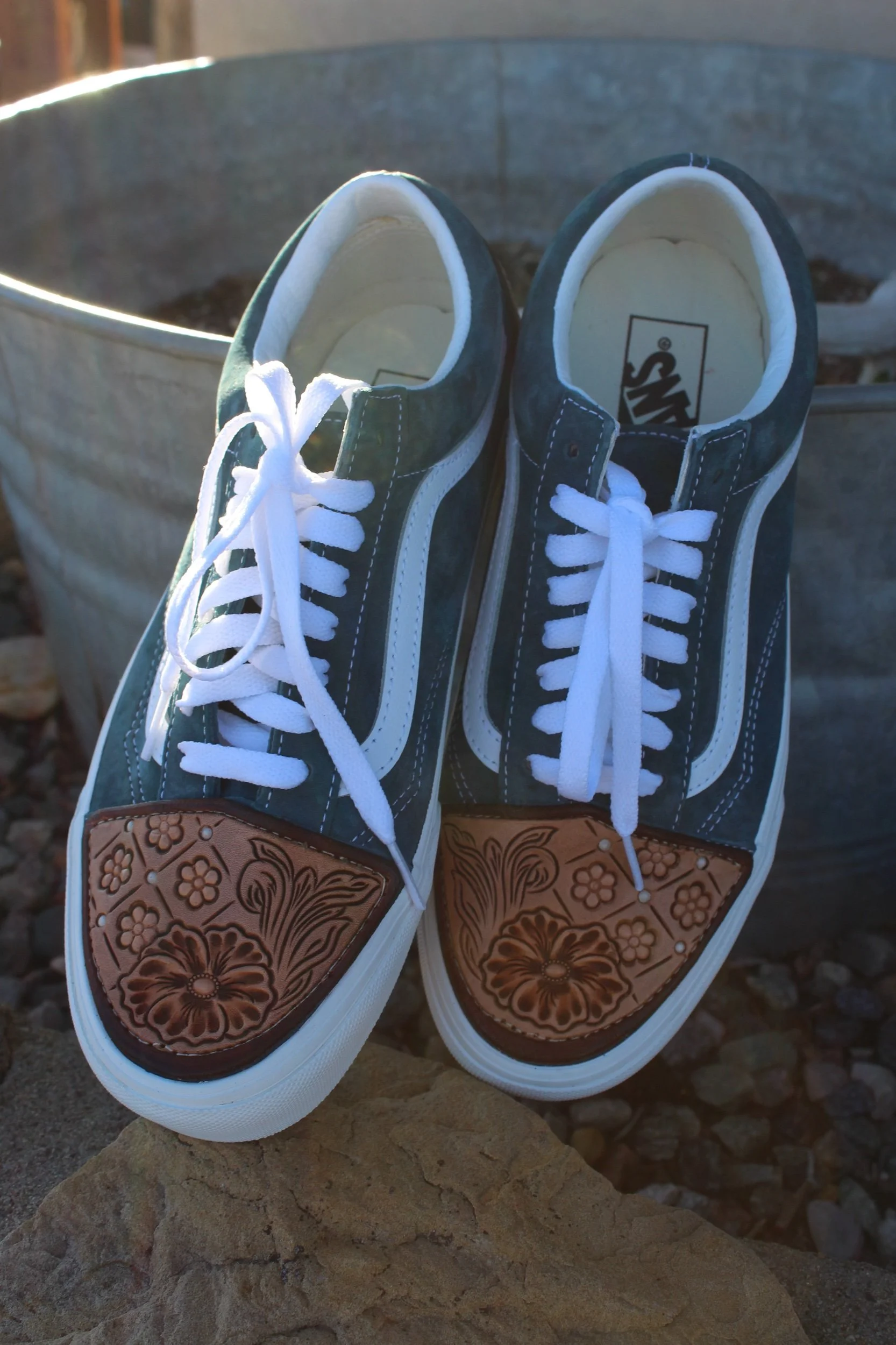 One-of-a-Kind tooled Vans. These are a women’s size 9.